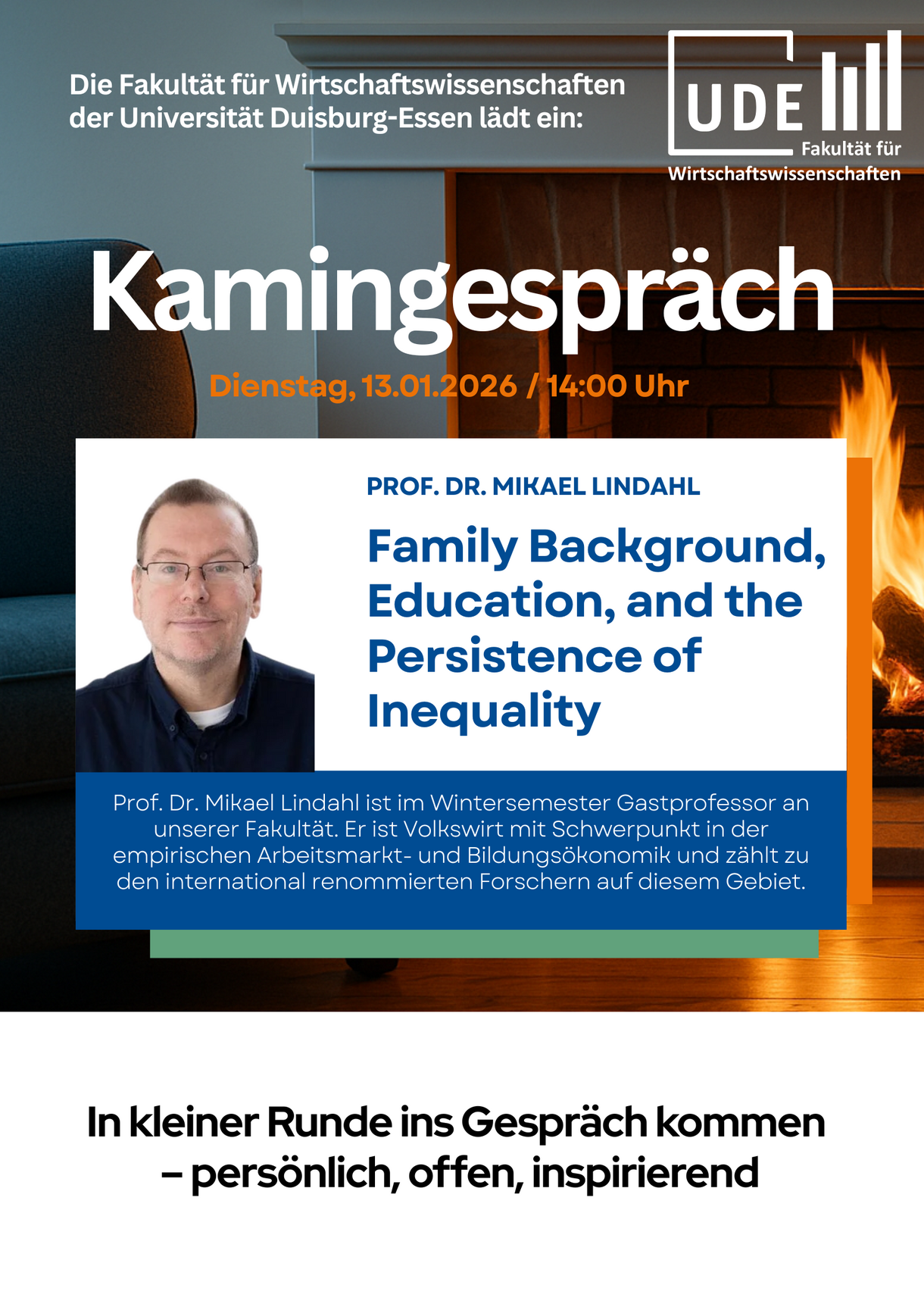 Herr Prof. Dr. Mikael Lindahl ist im Wintersemester Gastprofessor an unserer Fakultät. Er ist Volkswirt mit Schwerpunkt in der empirischen Arbeitsmarkt- und Bildungsökonomik und zählt zu den international renommierten Forschern auf diesem Gebiet.