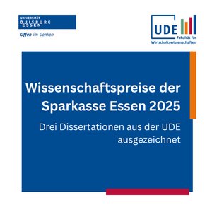 Seit 1989 vergibt die Sparkasse Essen gemeinsam mit der Universität Duisburg‑Essen jährlich den renommierten Wissenschaftspreis. Mit dieser Auszeichnung werden herausragende Dissertationen in den Fachbereichen Medizin, Bildungs-/Geisteswissenschaften und Wirtschaftswissenschaften geehrt – Arbeiten, die durch wissenschaftliche Qualität, innovative Fragestellungen und gesellschaftliche Relevanz überzeugen.