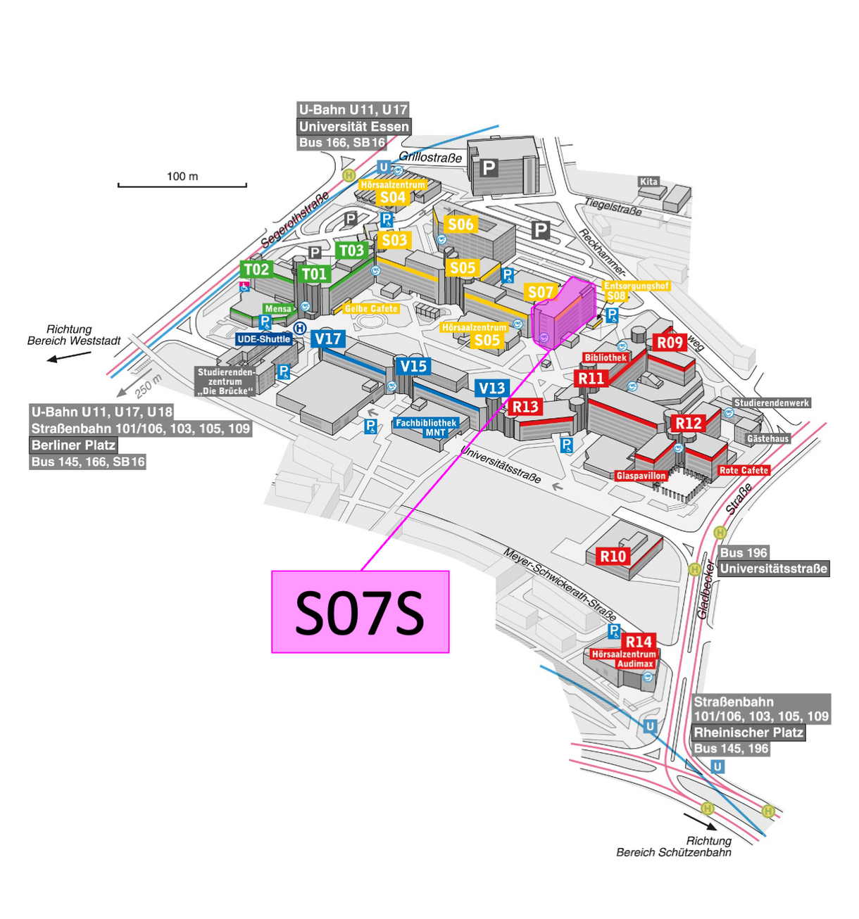 Das Gebäude S07 befindet sich am Hauptcampus in Essen.