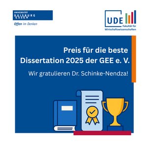 Die Fakultät für Wirtschaftswissenschaften gratuliert Dr. Aiko Schinke-Nendza herzlich zum Erhalt des Preises für die beste Dissertation 2025 der Gesellschaft für Energiewissenschaft und Energiewirtschaft (GEE e. V.).