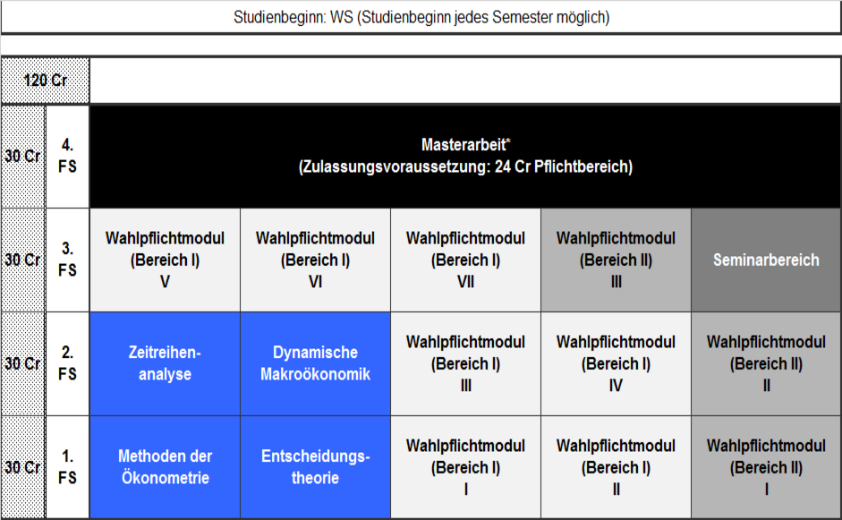 - Masterarbeit (Master VWL) (30 Credits), 4. Fachsemester, Pflicht